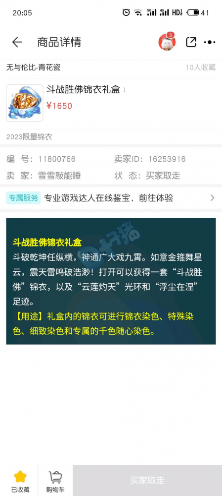 斗战胜佛为今年的七夕款限量锦衣,它的战甲设计霸气十足,加上独有的特色武器金箍棒令销量大涨。不过,由于去年香云纱礼盒存量过多导致的掉价现象,让许多玩家没有囤货斗战胜佛,没想到如今的斗战胜佛成交价已达1650元,不少商人都拍腿后悔。