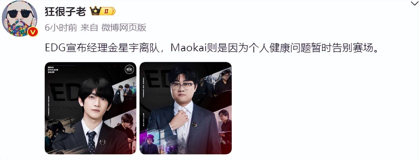 更离谱的是,近日EDG还在管理层方面上演了“青春风暴”,先是跟朱开带队拿下S11冠军的茂凯教练宣布休息,而后经理金星宇离队,再加上Meiko等出走的选手,完成了自下而上的大洗牌。