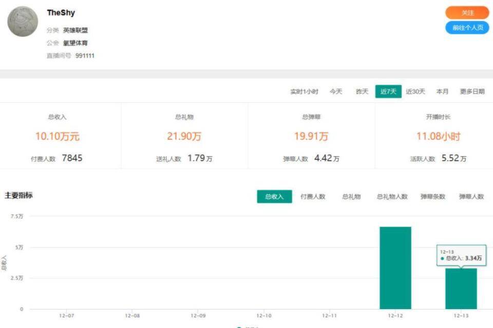 结果大家发现,虽然活跃人数两人相差不多,但是直播收入的数据中,theshy碾压了uzi,我们看到两人的直播时长中,uzi的直播时长将近19个小时,而theshy的直播时长只有11个小时,但是收入uzi只有1.83万,theshy有10.1万,多了8倍左右。
