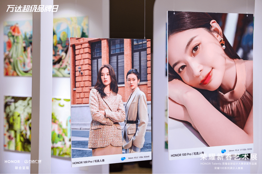 现场还展示了由荣耀100系列拍摄的满分人像作品。作为荣耀数字系列满分迭代新品,荣耀100系列创新的“单反级写真相机”在硬件上首发旗舰级的索尼IMX906大底传感器,全系升级写真人像算法引擎且支持光学防抖,以软硬协同的技术优势,使人像照片美的更真实、更自然。另外还能根据人物不同脸型情况,定制化地进行AI微调和修容,以黄金比例效果让人像更好看,让每一拍都“美,满分上镜”。