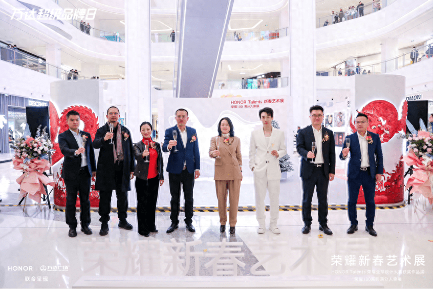 在本次新春艺术展中,荣耀与万达商管集团通力合作,为广大消费者带来了一场科技与艺术交融的艺术大秀,荣耀中国区体验店管理部部长赵鹏,荣耀全球媒介部部长李蕾,荣耀北京业务部部长陶正,中央美术学院城市设计学院副院长卓凡,青年演员昌隆,万达商管集团总裁助理兼北区公司副总裁吴小菊,万达商管集团北京城市公司总经理孙凯,北京五棵松万达广场总经理李勇等嘉宾受邀出席。未来,荣耀将始终秉持“有朋友,有未来”的理念,共同构建与万达商管集团的紧密型战略合作伙伴关系。