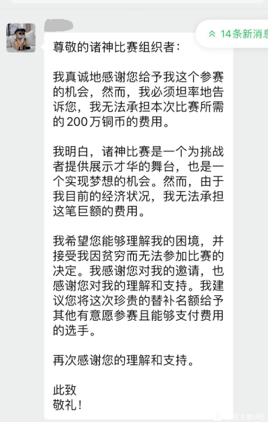 要知道即便是LPL也未曾听闻过选手花钱买参赛名额的事情,《逆水寒》诸神之战现在这么牌面了吗,花1500元也只能买个替补的名额?