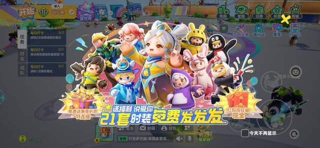 除此之外,《元梦之星》还有各种签到福利、活动套装、星愿币等奖励等供玩家获取,每位玩家在登录后都可以通过签到获得这些福利,同时还有机会获得一份10祈愿,必出外观或者非凡的奖励,这种不氪金也能开出好东西的设定,让玩家们更加愿意投入到游戏中去。