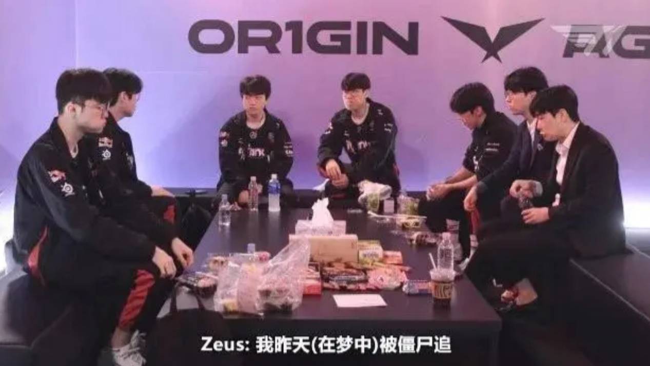 一句话直接逗乐观众,众所周知,僵尸是The Shy不理智粉丝的一个代名词,Zeus明显是不知道这个梗的,只听说僵尸来了觉得很可怕,值得一提的是,在之前的一个T1采访视频中,Zeus表示自己前一天梦到自己被僵尸追。