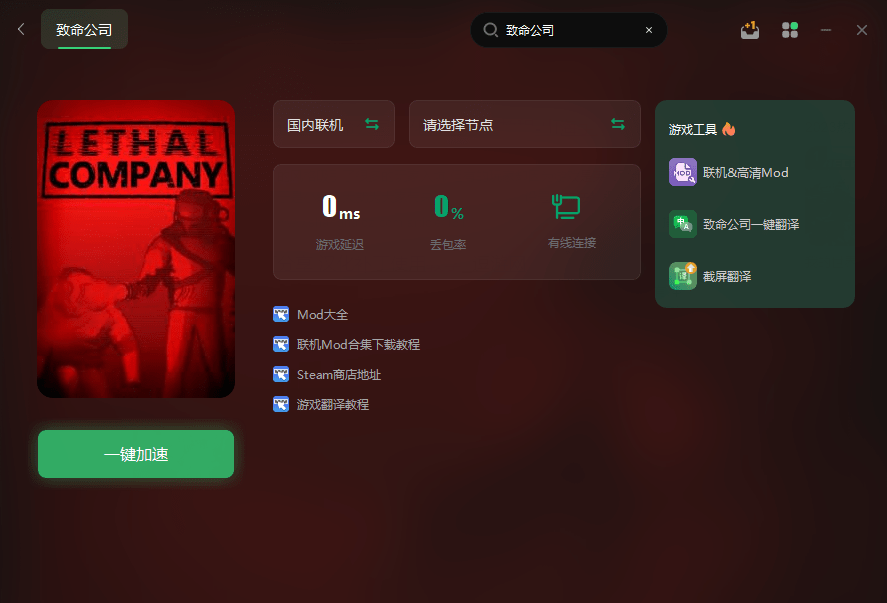致命公司的中文汉化其实是非常简单的,玩家可以借助奇游工具来进行操作。首先玩家需要打开奇游工具,然后在搜索框里面直接搜索致命公司,点击进入详细页面先进行一键优化。这样做可以有效的提升局部的网络,能够有效的防止游戏出现黑屏或者是卡顿、闪退等问题出现的概率。