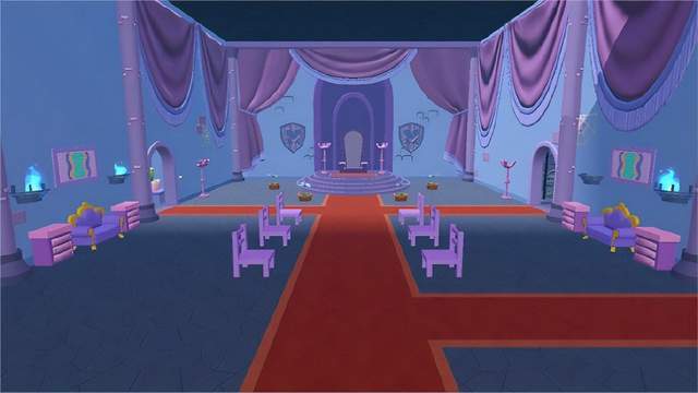 此外,《喜羊羊与灰太狼》中的狼堡也将作为全新的捉迷藏地图加入游戏当中,狼堡的设计以碉楼古堡为基底,紫黑的底色为狼堡增添了几分神秘色彩。大厅的红地毯延绵至王座面前,更显得威严满满,完美地还原了动画片中狼堡的模样,让我们为《蛋仔派对》点赞!
