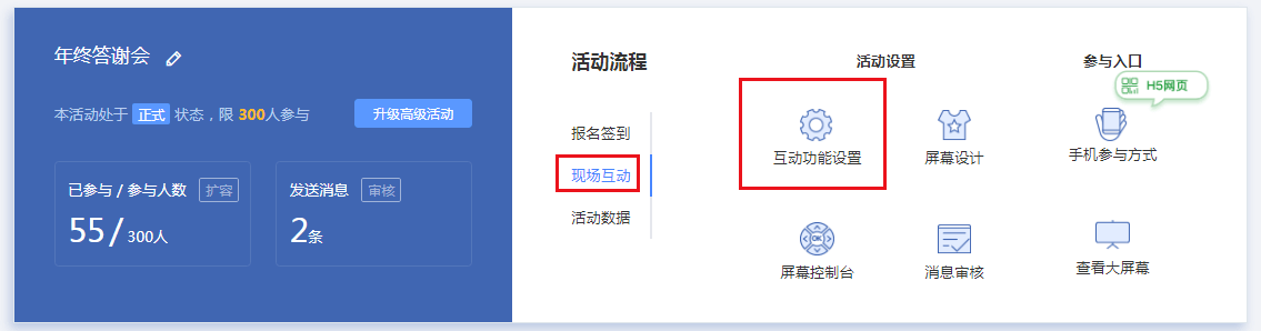 (一)进入互动功能设置,选择“游戏抽奖”进行相关设置