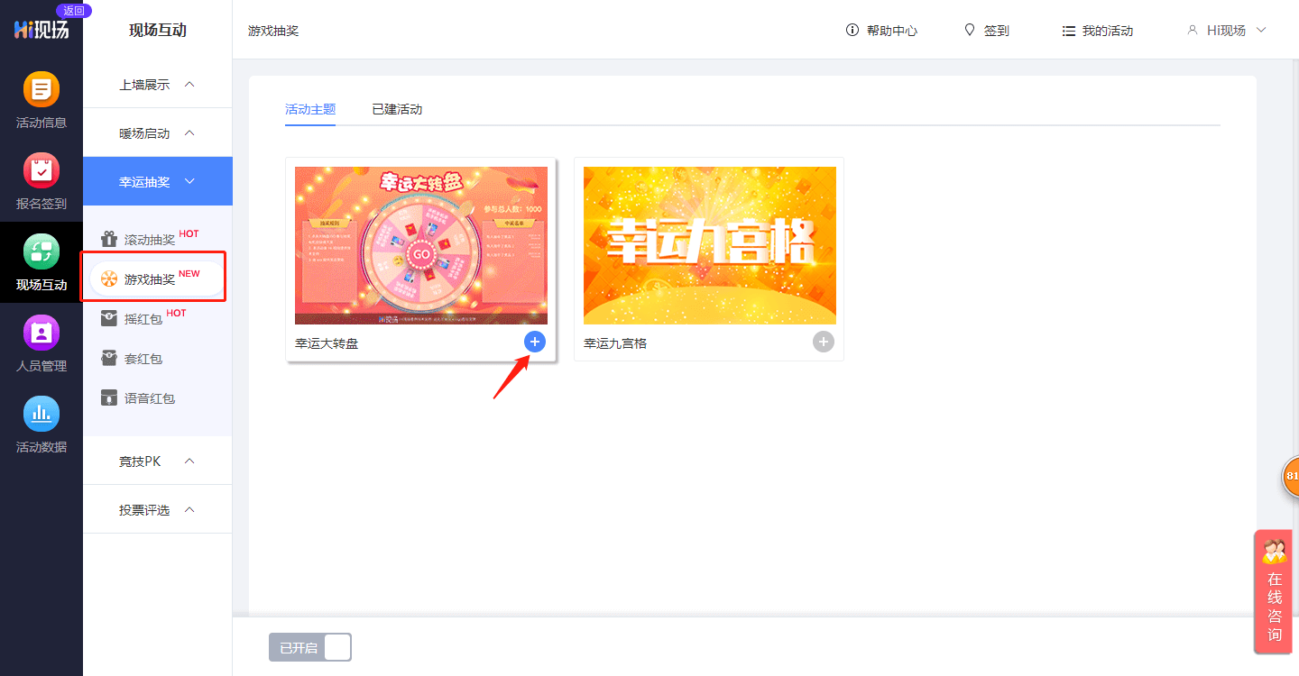 Hi现场互动系统游戏配置教程也很简单,下面以大转盘为例子,给大家演示一下: