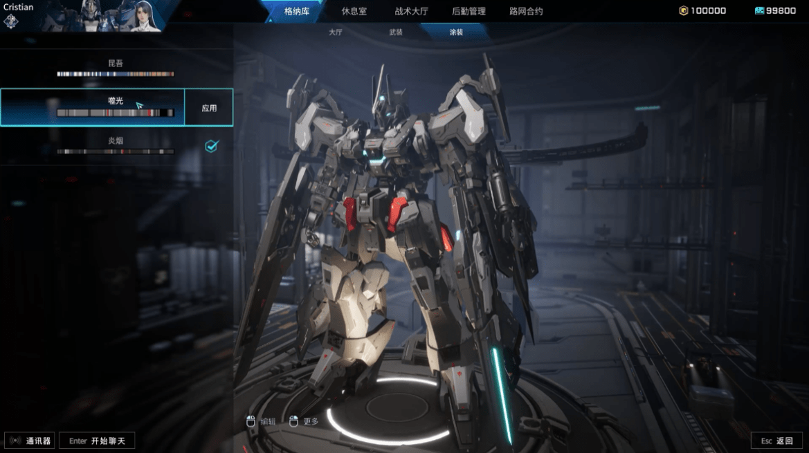 尽管,游戏只是曝光了游戏PV和实机演示,但是从视频中能够看出《解限机》拥有胶佬们狂喜的自定义内容,就比如游戏的格纳库中,你可以给机体做一个相当完善的涂装自定义,从外甲、武装以及内构等等方面都可以进行细致化的分色以及材质的替换,甚至能够添加水贴,标识等等。