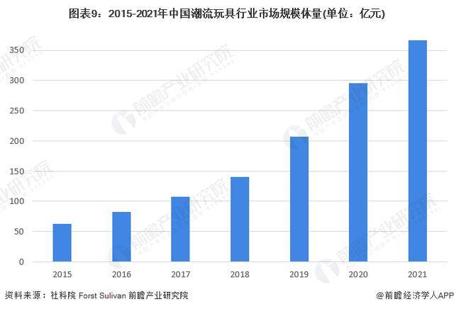 根据社科院2021年发布的潮玩发展报告可知,从2015年开始,七年的时间里市场规模从63亿元增长到了350亿元,增长率高达34.08%,并且仍在逐年递增。截止2023年的报告指出,预计未来(2022-2026)国内市场年均增长会超过24%,2026年零售额甚至会达到1101亿元。