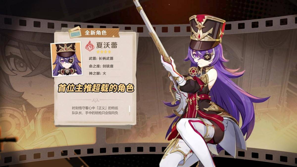 夏沃蕾自原神开启以来首位主推超载的角色,还是以军娘题材的设计风格,主打武器为铳枪!