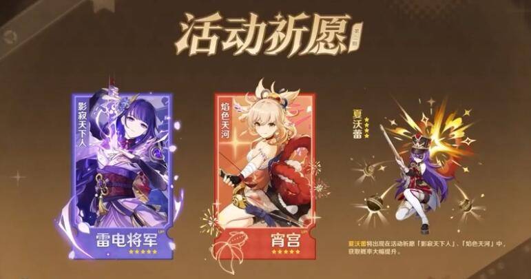 然而下半场的卡池则是雷神与宵宫的专场,并且伴有四星新角色夏沃蕾陪伴!