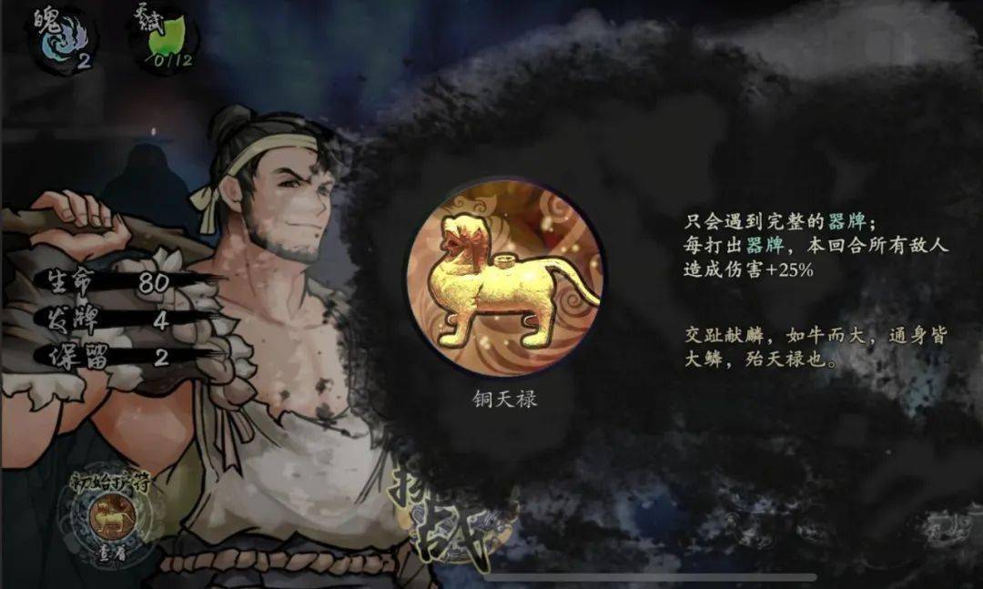 又比如我们在剧情模式里的铁匠铺大叔,它在无尽模式里同样是可选用的角色。他的初始遗物让原本需要凑够一对才能发挥作用的“器”牌,总会以单张就能生效的形态出现,每次使用“器”还会给自己增伤。构筑思路明确的同时,也很符合剧情定位。