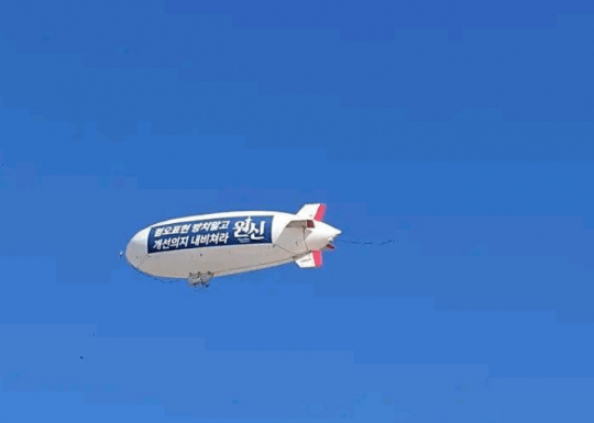 然而并不是所有玩家对这次的更新都满意,因为芙宁娜这个角色,许多韩国玩家在最近这半个月中都在向米哈游施压。以往每当玩家感到不满,通常都会采用包卡车立广告牌游街的方式抗议。但这一次,韩国玩家众筹了一艘飞艇.......