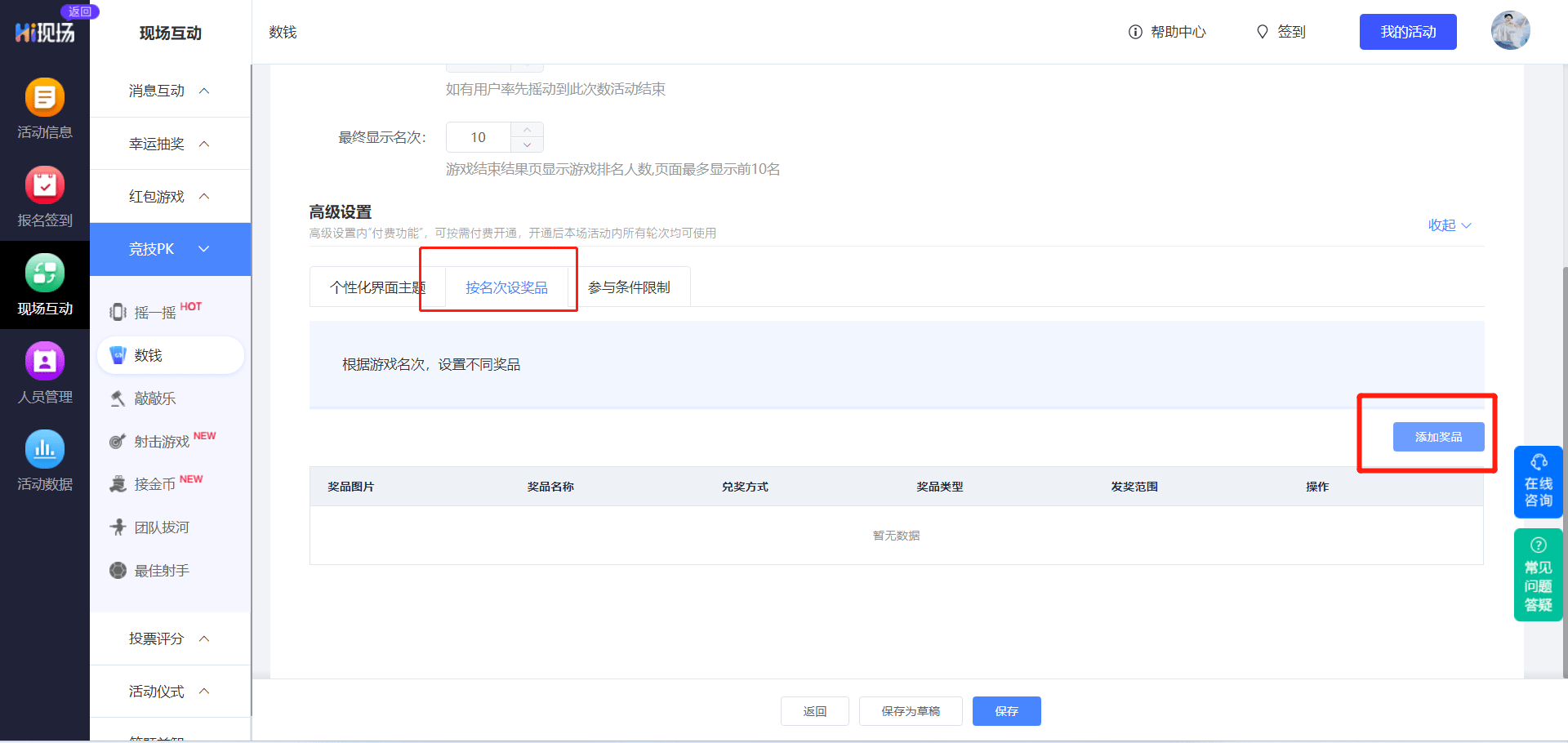 (2)奖品设置