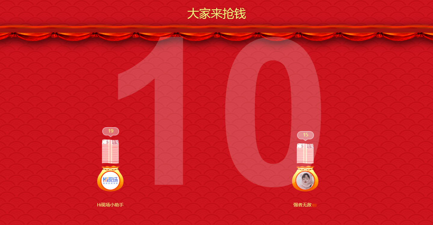参与者微信扫码,进入数钱页面参与互动,大屏幕动态展示数钱过程与结果