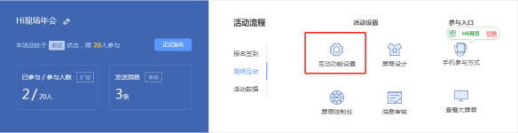 Hi现场是北京中网梵天互动娱乐科技有限公司开发的一款简单、免费、好玩的现场互动大屏幕制作工具,在市场同类产品中,已经连续数年百度指数排名第一,每年服务30万场活动,全球累积有超过一亿人参与过Hi现场的活动。