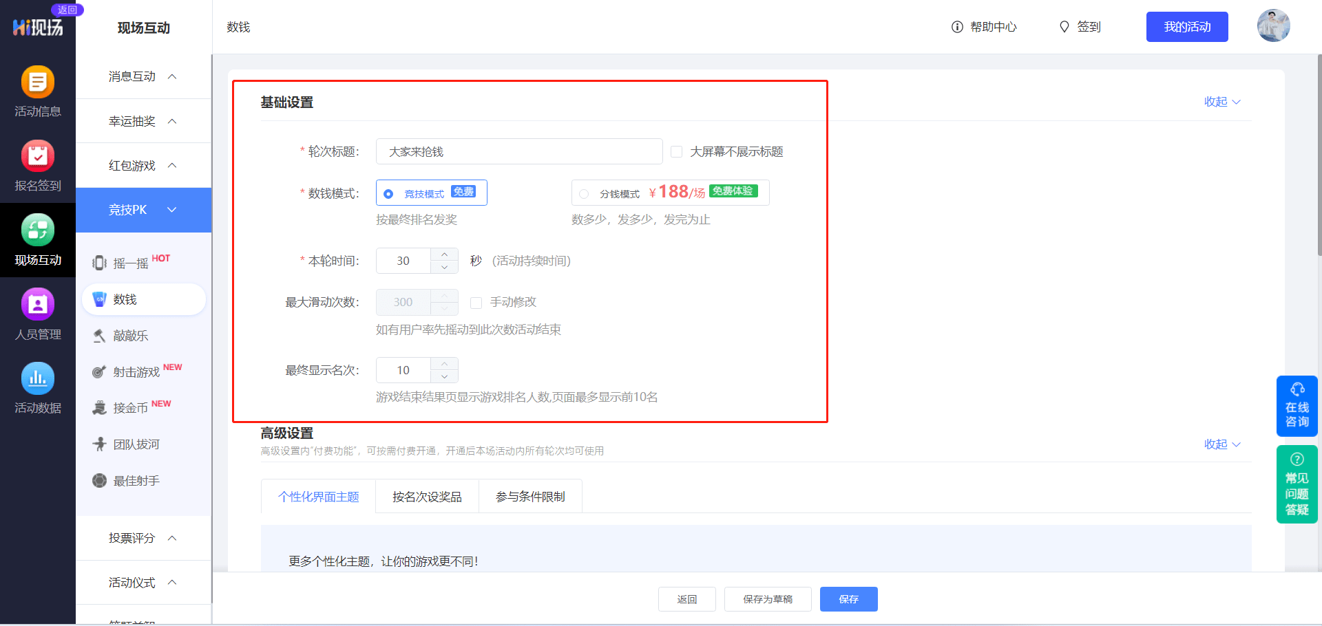 制作这些游戏的话也是非常简单,这里以制作以现场疯狂数钱互动游戏为例进行介绍,主要包括以下几个步骤: