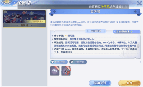 3. 玩法规则:圣诞地图中将会出现圣诞特色怪物,包括MVP卡仑、冰暴骑士,以及大量圣诞波利和mini波利怪。玩家可在圣诞活动期间进入地图,击败怪物获取活动专属产出。
