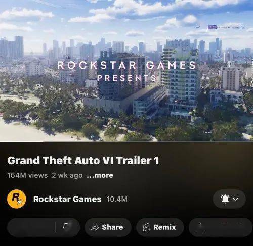 《GTA6》首部预告目前播放量已经突破1.5亿,而达到如此惊人数据只用了2周,热度喜人的同时也有玩家哀嚎,怎么才过去2周?