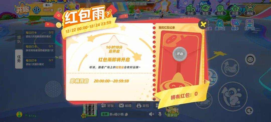 还有一个推荐大家去参与的活动,是元梦之星的。是真的看到有玩家分享了188的好运,就三天时间,可以去参与一下,整点进入即可。活动可以提前去了解一下。
