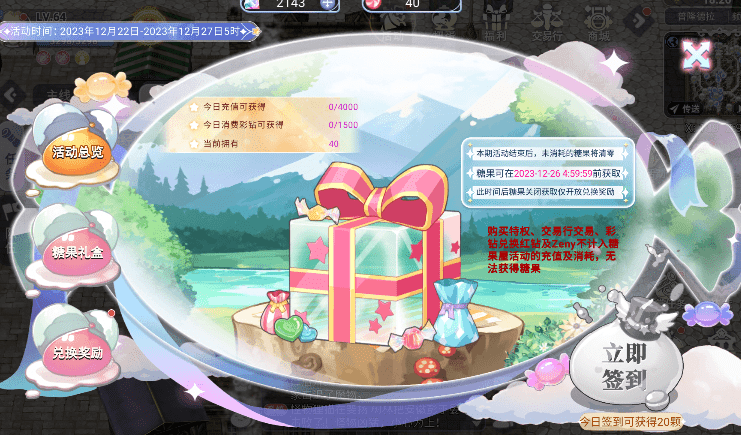 在糖果屋活动中,玩家们可以通过充值或消费获得糖果。这些糖果可以在活动结束后兑换丰厚的奖励。请注意,未消耗的糖果将在活动结束后清零,所以请及时使用。此外,每日充值和消费达到一定额度还可获得更多糖果。