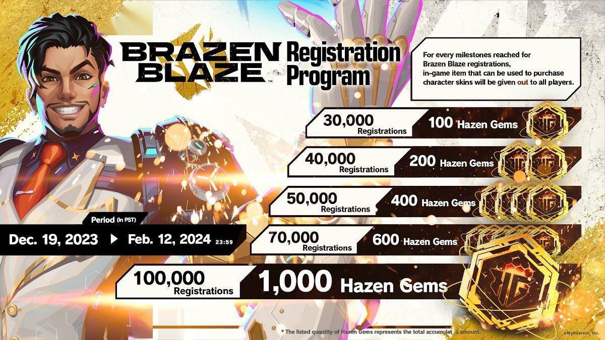 《Brazen Blaze》还发布邀请计划,同样持续到2月12日,玩家最多可邀请25名玩家加入,邀请人和被邀请人都可获得游戏内物品,如果达到上限的话,还可获得宝石与限量版玩家卡套装。