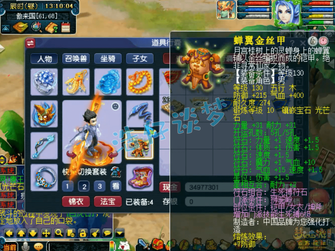 130级铠甲,力耐双加62,打了10锻光芒石!