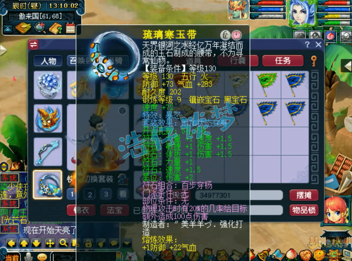130级暴怒变身套腰带,打了9锻黑宝石,至此他也凑齐了3件变身套,我感觉他之前玩的是狮驼岭,后来才转的力地府!