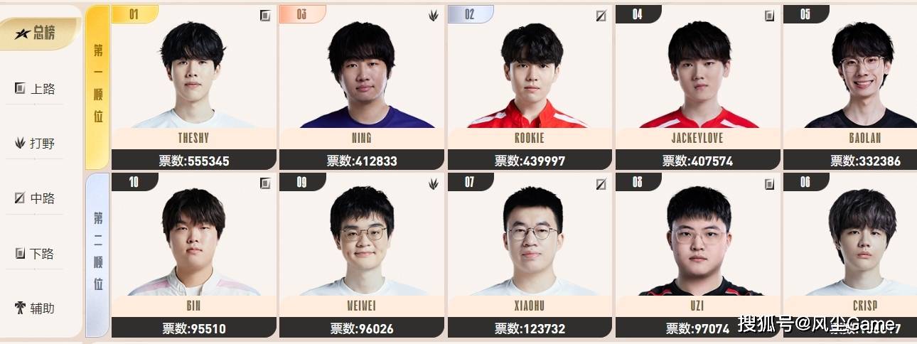 在年度颁奖日,LPL还会根据玩家的投票,角逐出参与全明星的选手,奉上几场有意思的对抗赛,除了有人气的老将们,有登场机会之外,官方还发起了新生对抗赛,给那些加入LPL不久的新选手,一次在大舞台上展示自己的机会,下面来看一下现阶段,各位置投票情况。