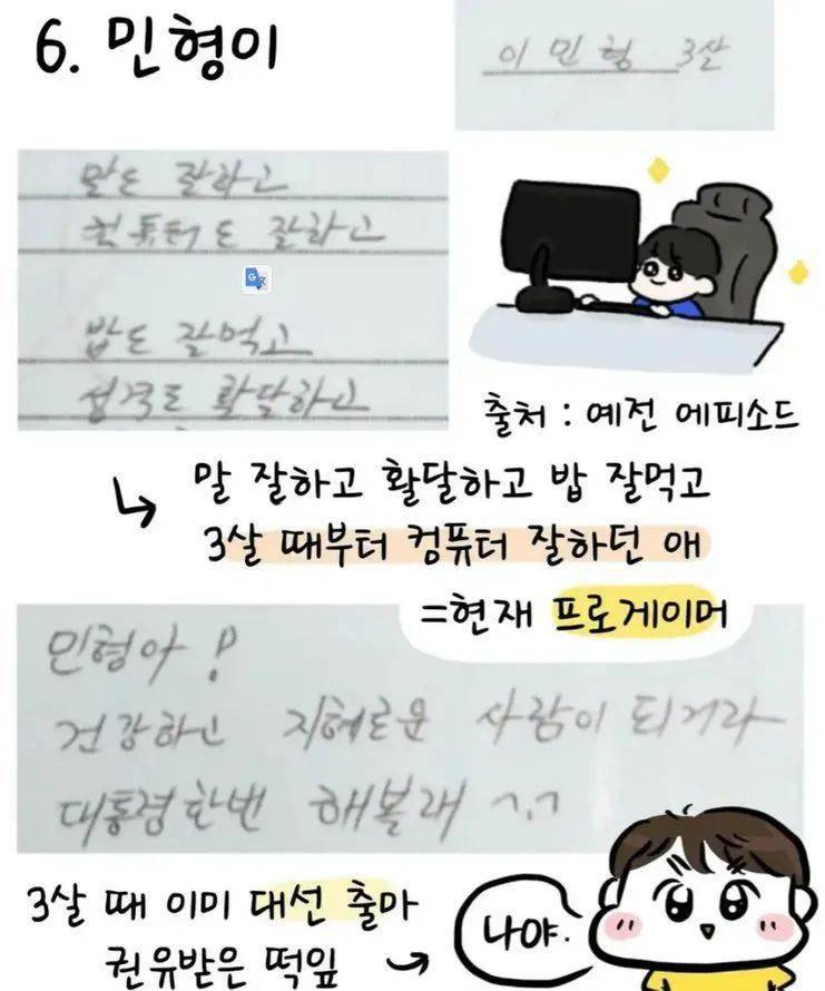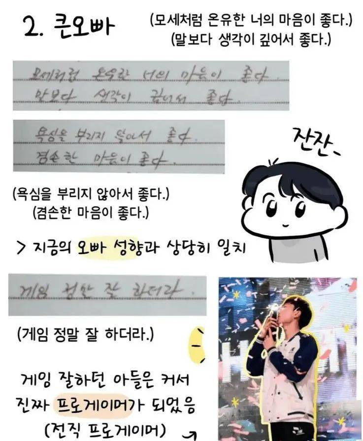 (会说话、开朗大方、喜欢吃饭、从3岁时就很擅长玩电脑的孩子=现在的职业选手)