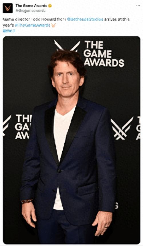 虽然TGA2023颁奖典礼已经结束了有一段时间,不过TGA官方推特还是在今日分享了贝塞斯达的游戏总监陶德·霍华德的现场照片。