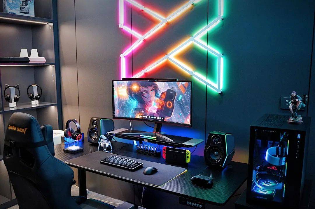 一张好的电竞桌不仅能够增强游戏体验,还能为整个派对增添游戏氛围,andaseaT安德斯特未来战士自带RGB幻彩灯效,多种色彩随心调配,激战氛围直接拉满,给电竞夜晚增添了别样光彩!