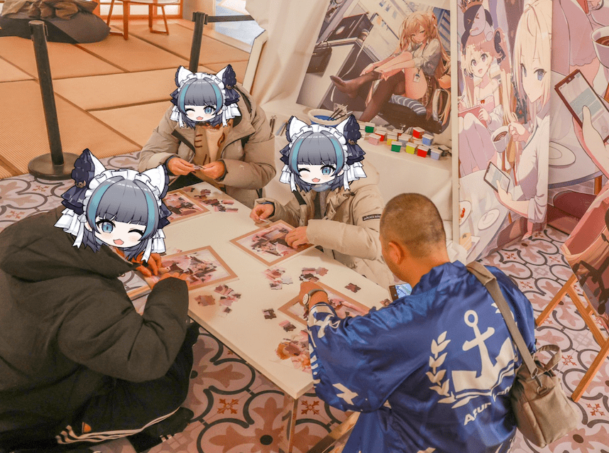 目之所及都是角色身影,指挥官簇拥着coser小姐姐与喜欢角色的等身立牌,兴奋地不停拍照与合影。