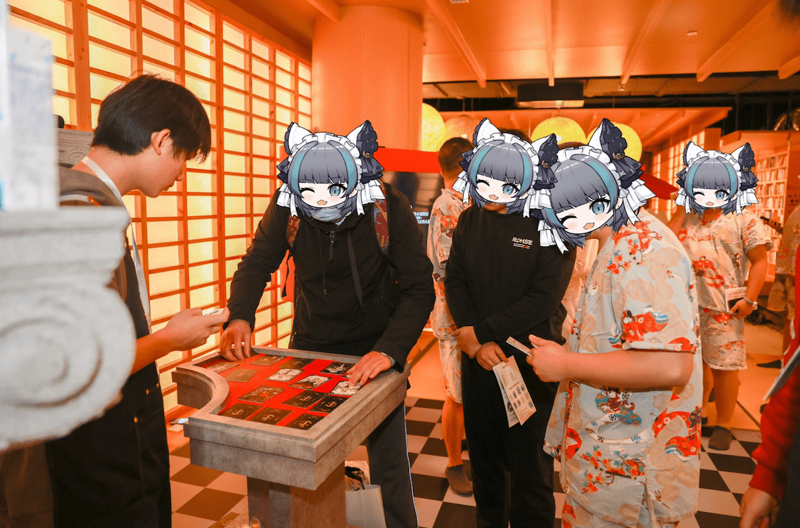 在2楼“重樱建造挑战”,玩家“失忆”向澎湃新闻记者介绍,如果能在这个任务点抽中重樱角色或者其他超稀有角色,就能在小本本上获得印章。为此她已经循环排队十几轮,笑称“非酋本酋”。