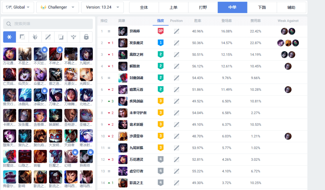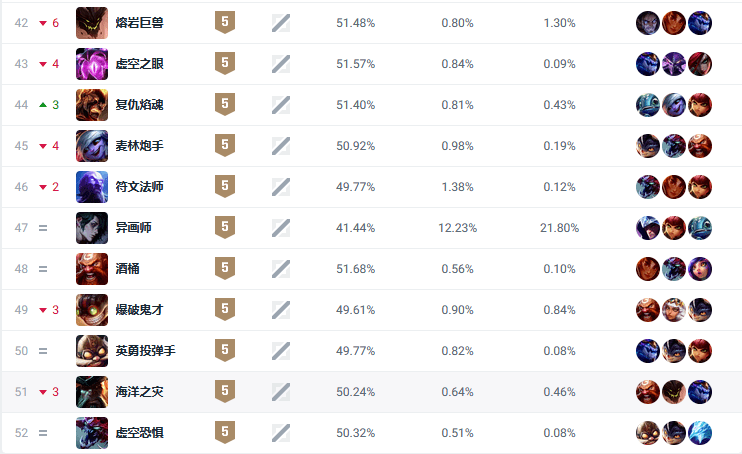 数据最能证明这一点,在翡翠段位以上的数据统计中,慧在中单位中仅仅只能排名第47,非常扎实的T5中单。排在慧后面的基本都是已经不能中单的英雄了,像是酒桶,飞机,大虫子这些英雄,基本都是只有绝活哥在玩。