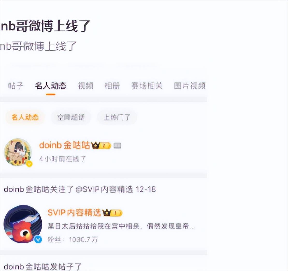 今天凌晨,突然有网友粉丝发现主播Doinb登录了微博超话,虽然没有发表动态,但大家依然注意到他确实上线了。事情发生后,引起了不少人的注意,其中还有网友将消息发在了鱼吧,不得不说现在还是有很多人在随时关注他的。