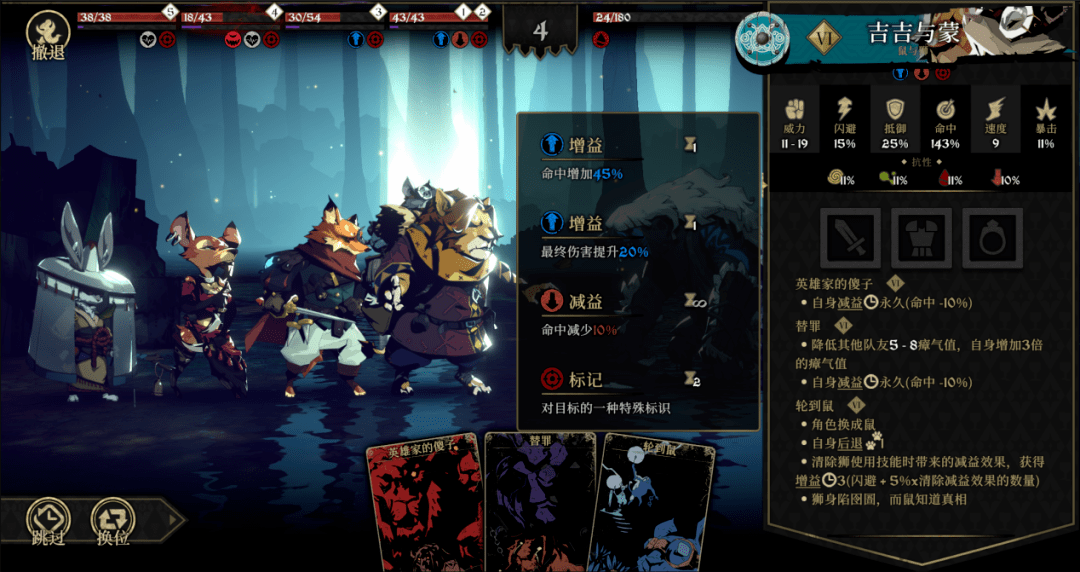 一方面,游戏中全动物角色的设计自带好感加成,无语言文字以及略显独特的美术风格,都能让这款游戏在同类产品中脱颖而出。另一方面,略显硬核的类《暗黑地牢》卡牌策略玩法,赋予了这款产品一些独游的精品气质,从而削弱了不少商业化的气息。