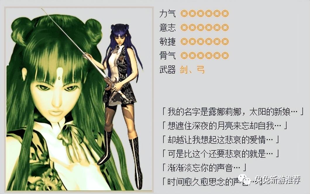 她主要武器是剑和弓。在初期的打怪升级中非常得心应手。第一种,以敏捷为主,使用弓箭会较有利。第二种,用剑的以力气为主,记得不要使用弓箭加的却是力气,那是会影响你的战力的。