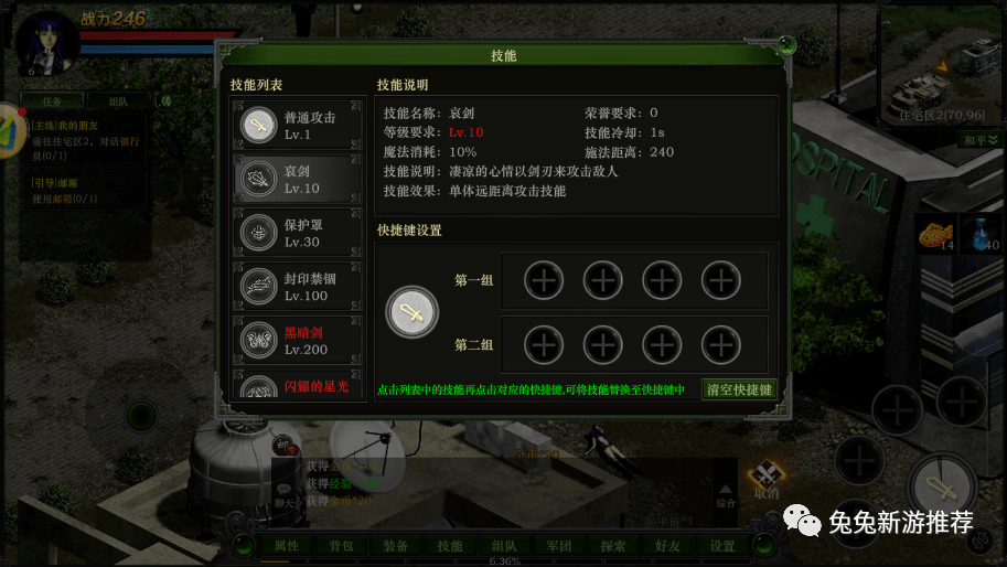白色技能里面有两个非常好用的技能哀剑和保护罩,这两个技能可以很好的帮助你度过前期,哀剑有超高伤害,保护罩可以帮你减少怪物对于你的伤害。