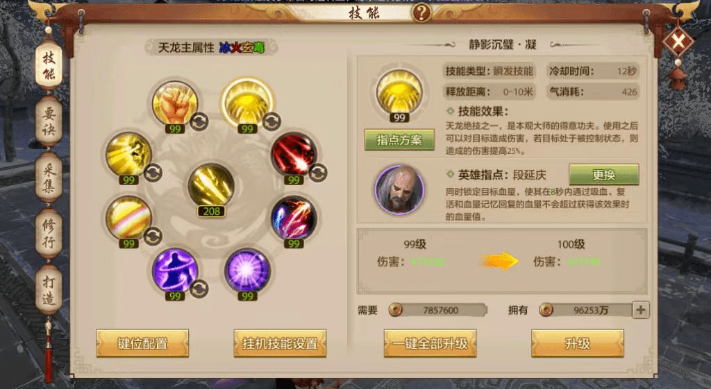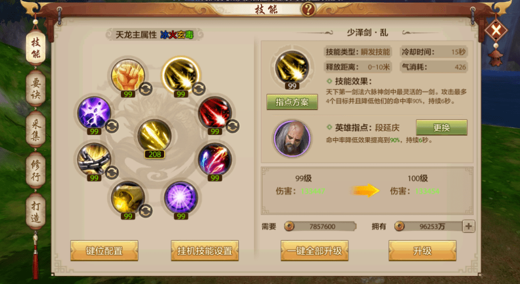 诸位少侠可知,在对战PK中,最让人头痛的就是核心爆发技能在关键时刻MISS,例如唐门的爆发技能天机弩、少林如来神掌、星宿天地同寿、丐帮飞龙在天等等。该技能让天龙在作战中对敌方造成了极高的减益效果,让诸门派皆是摸不着头脑~