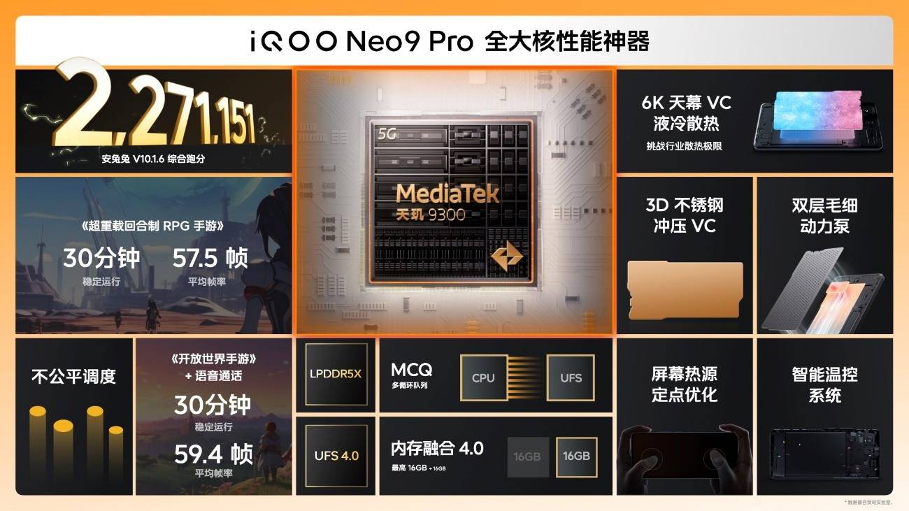 背靠“蓝晶芯片技术栈”,搭载同款天玑9300旗舰芯的iQOO Neo9 Pro站在巨人的肩膀上加深联合调校,从芯片调优到体验闭环,扎实覆盖八大赛道,性能自然水到渠成。