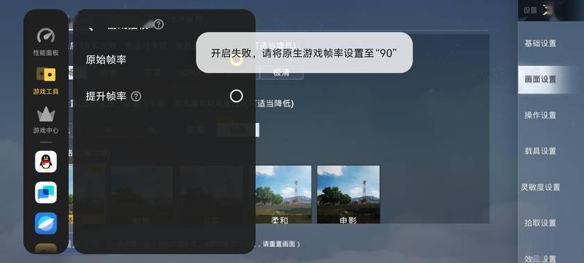 比较遗憾的是,iQOO Neo9 Pro还没有适配《和平精英》游戏内90帧高帧率的选项,我本想借助自研电竞芯片Q1的帮助,通过插帧的方式提升帧率,但系统提示“开启失败,请将游戏帧率设置至90”。而接下来就进入了死循环,想要开启“提升帧率”选项,需要在游戏内开启90帧,但目前这款手机并没有适配90帧。可能因为我们手里的iQOO Neo9 Pro是工程样机,才会出现这样的情况,希望厂商能在后续的产品中进行优化,以解决这一问题,提升用户体验。