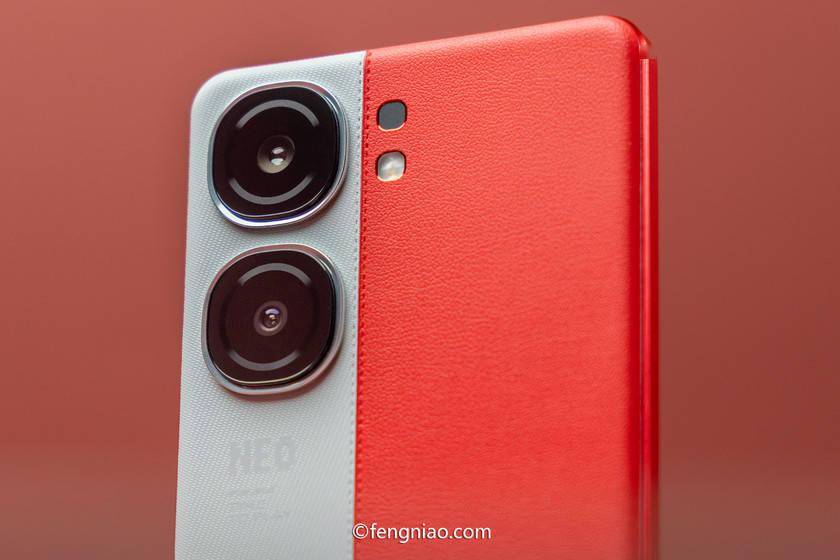 在外观配色设计方面,iQOO Neo9系列打破了前代产品固有的设计思路,仅仅是在配色上与前代产品有着“精神延续”。以我们本次拿到的“红白魂”配色为例,手机背面右侧使用了大面积的红色肤感荔枝纹素皮,左边则拼接有米白色碳纤维纹素皮,红白拼色的设计让人不禁联想起十分经典的红白机,而“红白魂”这一名字也算是对经典的致敬。除此之外,这款手机背面还印有Neo系列标志性的像素字符,以及“Time to play”字样,这也进一步凸显了Neo系列的酷玩风范,也让整台手机在外观上不再单调。