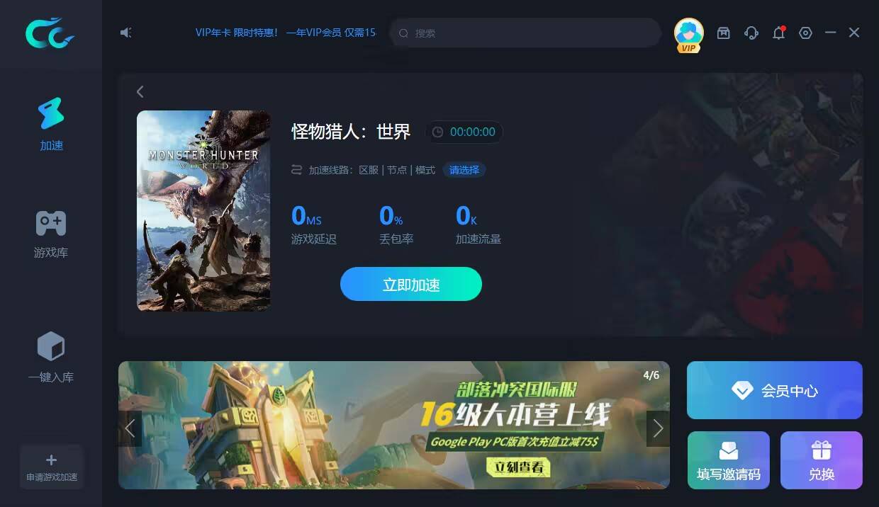 总之,《怪物猎人世界》是一款值得期待和入手的游戏,它的强大画面和游戏体验,以及近期在线人数和Steam新史低的出现,都让它成为了今年最值得关注的热门游戏之一,目前在cc加速器PC版输入兑换码CC666,还可获得3天免费时长。