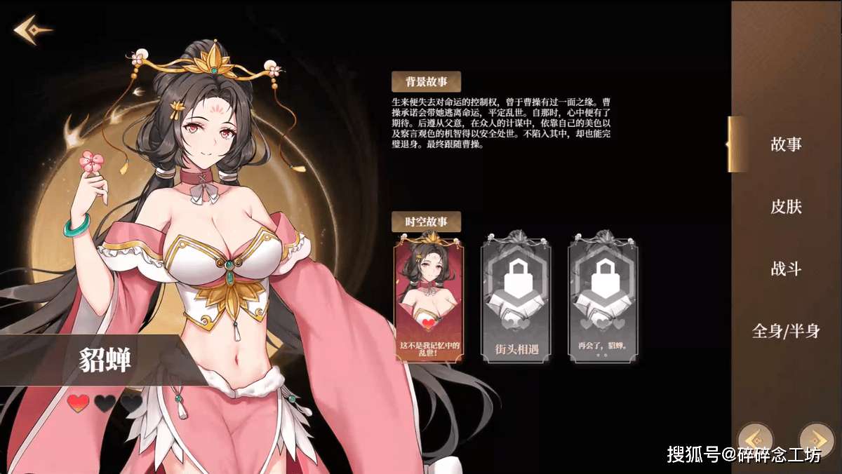 最为难能可贵的是,制作组对于角色的塑造比我预想中还要用心。我不是想说国外角色专门采用了诚意满满的日语和英语配音,也不单指角色技能非常丰富多彩,更不是想说立绘很美外加皮肤换装足够社保,而是每个女性都单独编写了鲜活的剧情。这些剧情放在鉴赏菜单里面需要逐步解锁,可以看到在这个世界观之下,这些我们熟悉的女性会有着怎样的经历和故事。当然部分剧情属于完全经不起推敲的纯爽文情节,但是只要带着图一乐的心态去看,你依然可以会心一笑——就像我们当年玩着同样三国+日本人物联动的《无双大蛇》一样,看各种历史人物的恶搞互动也是游戏主要卖点之一。