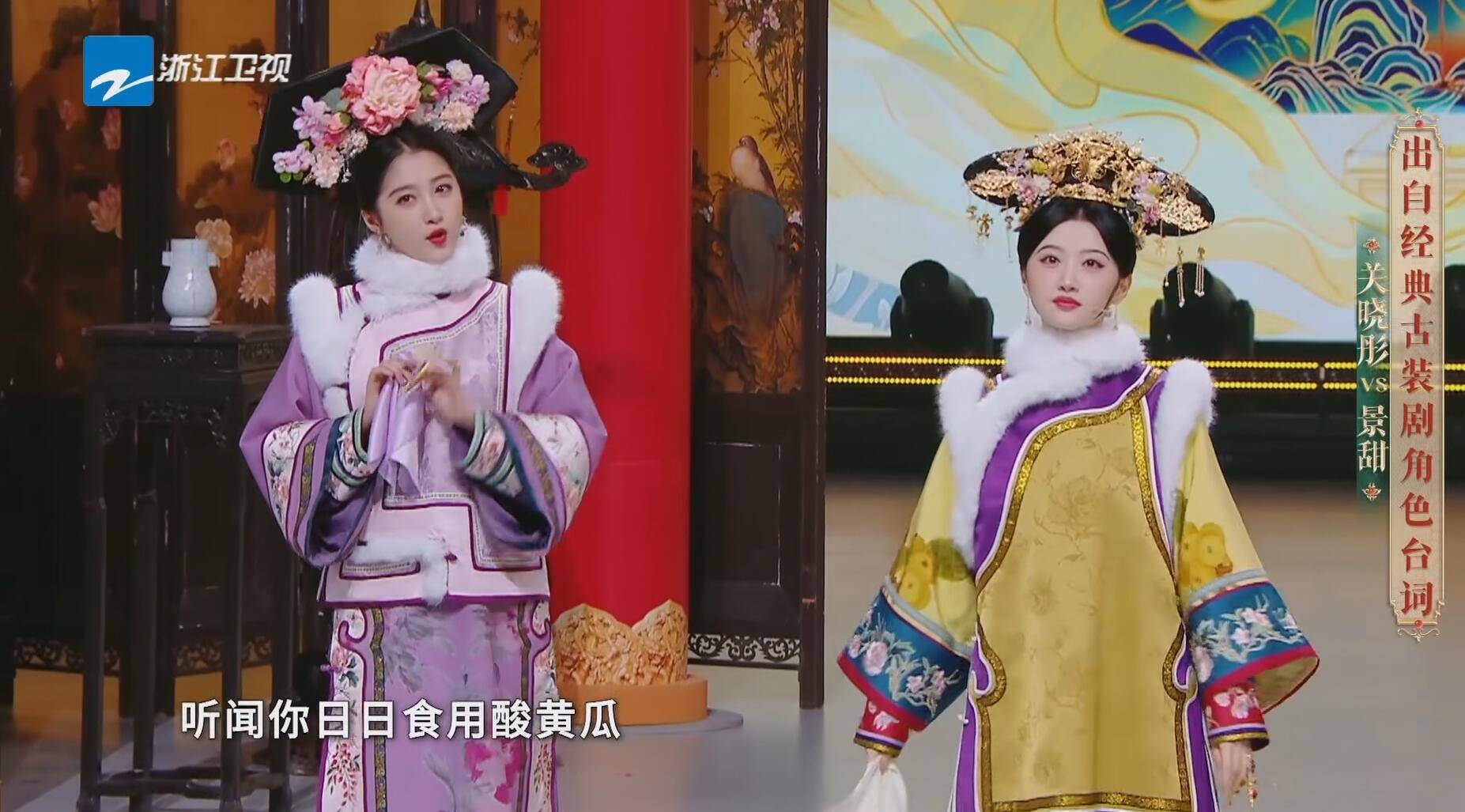 在这期节目一开始的时候,节目组让几位女生互相飙戏,给观众演一下那种宫斗的感觉。
