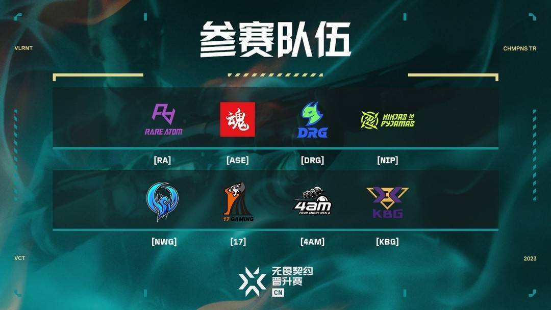 作为十支VCT CN联赛长期合作伙伴队伍官宣后,今年仅剩的通往VCT CN联赛的最后机会,本次无畏契约CN联赛晋升赛共有八支队伍参与,均为此前未能成为VCT CN联赛长期合作伙伴,且在今年9月至11月举办的无畏契约CN赛区进化者系列公开赛(VALORANT CN Evolution Series)赛事积分排名靠前的队伍。