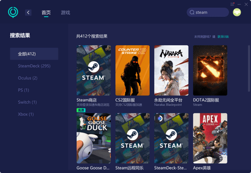 由于玩家和服务器的地理位置相距较远,因此可能会导致登录Steam时出现错误。打开UU,搜索《steam》,点击获得稳定网-络连接《steam》