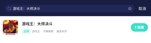 游戏服务器拥挤导致了网-络拥堵,因此玩家在登录大师决斗时可能会遇到登录超时和断开连接的问题。打开UU,搜索 《游戏王:大师决斗》,